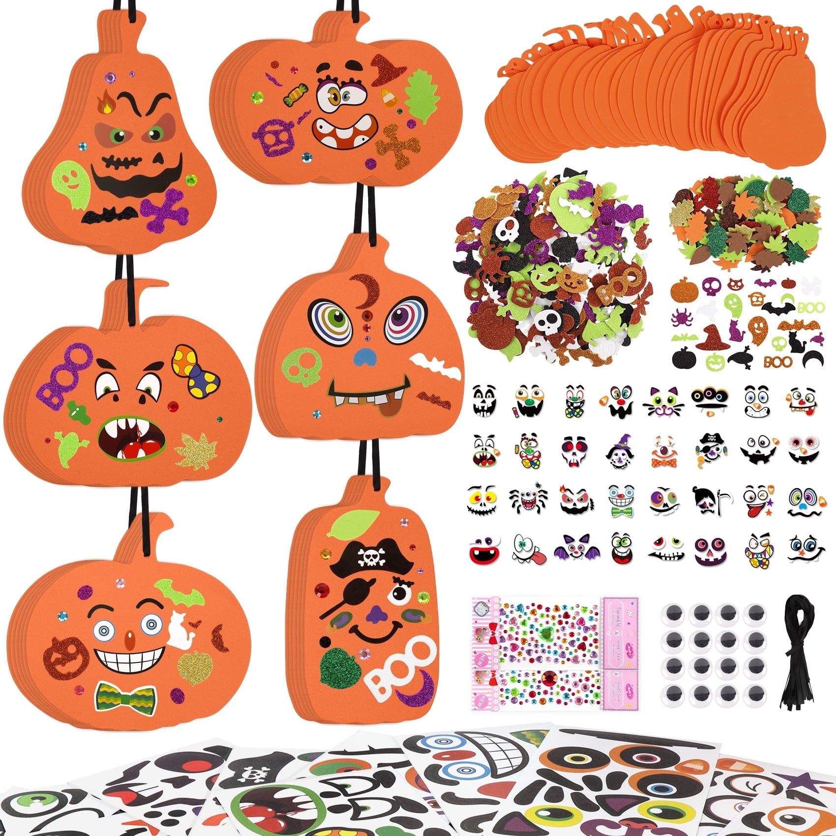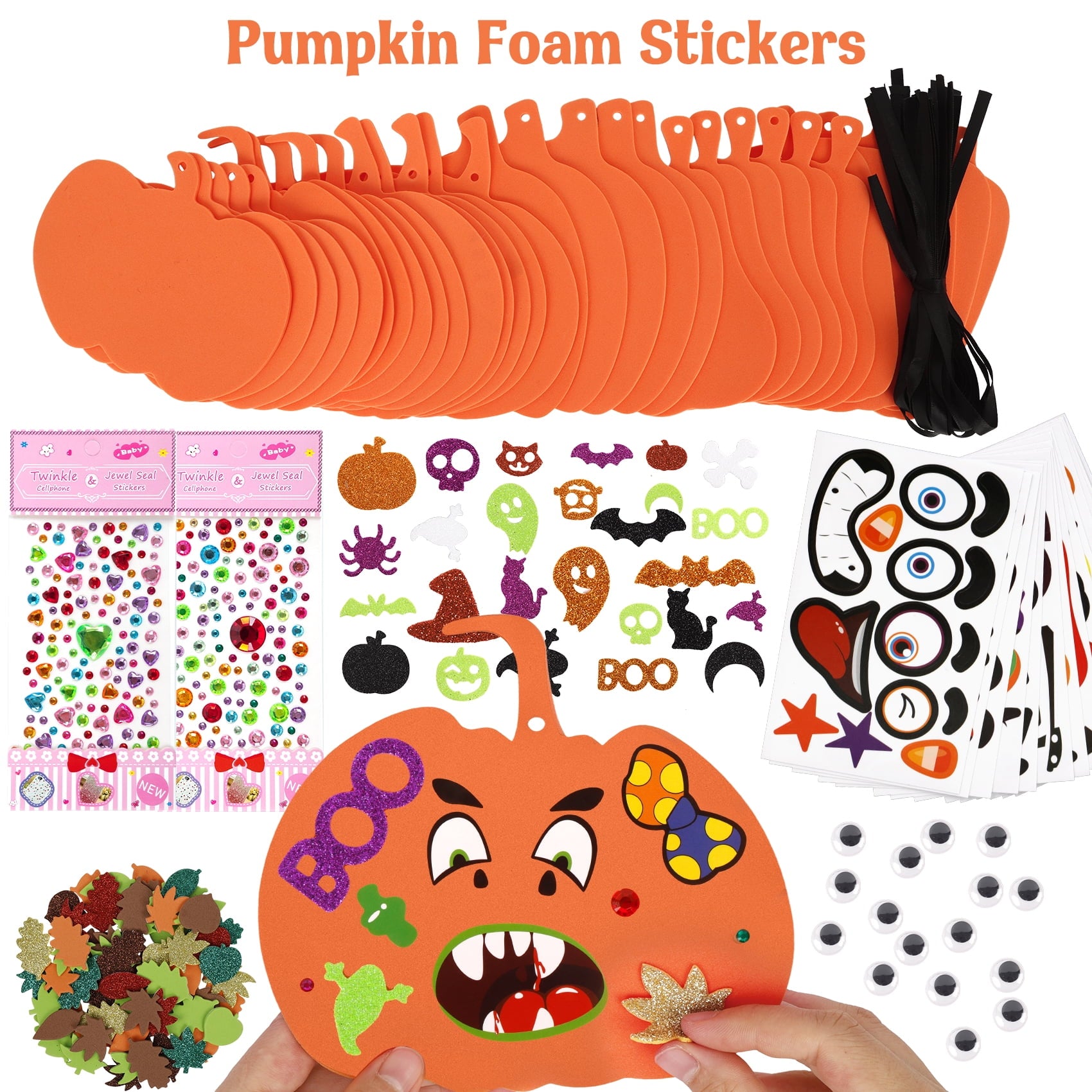Zsiparty Halloween Craft Kit, 36 Set DIY Fall Foam Pumpkin Decorations Ornaments, Stickers for Classroom Party Favor Supplies Activities
