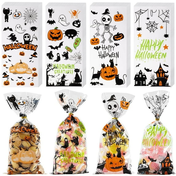 Our Halloween treat bags contain 200 pieces, with 4 designs, 50 pieces for each design, and 220 gold twist ties. The Halloween gift bags are sturdy and rich in elements,not easy to tear or damage, Halloween goodie bags are made of high-quality plastic and are non-toxic, odorless and reusable, Halloween cellophane treat bags provide ample space for candies, cookies, snacks, cards, small toys and other small items. The Halloween trick or treat bags are suitable for Halloween party souvenirs, trick or treat, Halloween theme markets, Halloween parent-child handicraft activities, etc.